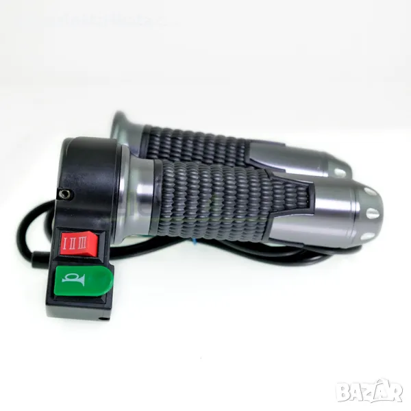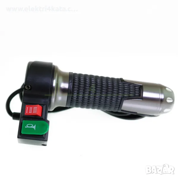 Ръкохватка за газ (масур) 12V-72V с три скорости и клаксон е с изчистен дизайн и антиплъзгаща повърхност за по-стабилно захващане.