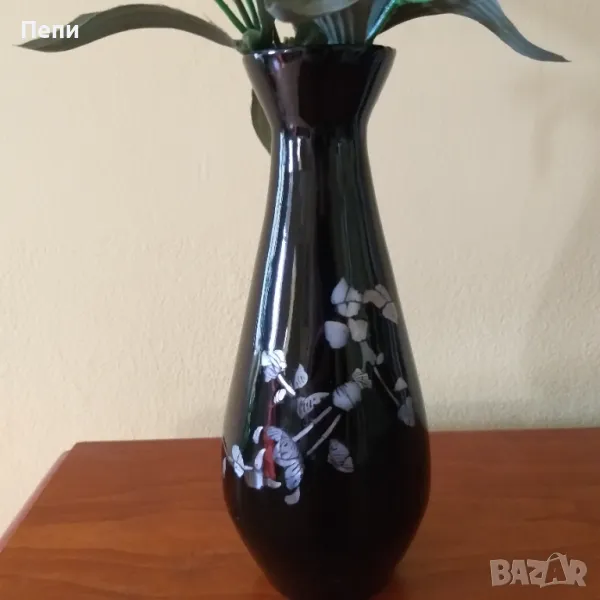 Уникална виетнамска ваза с инкрустирана седефена декорация. Висока е 20 см.