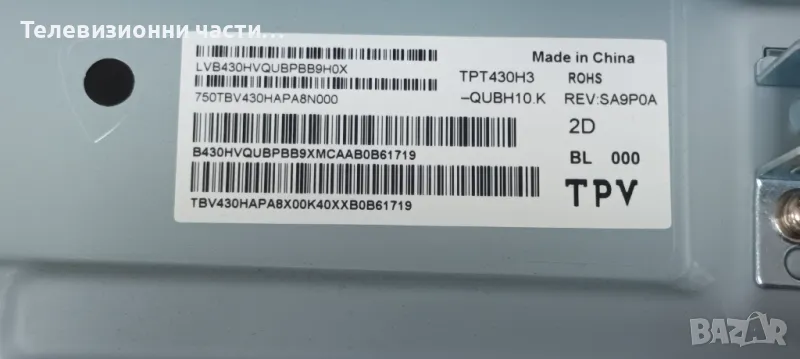 Philips 43PUS7505/12 със счупен екран.Панел TPT430H3-QUBH10.K.Матрица HV430QUB-H10