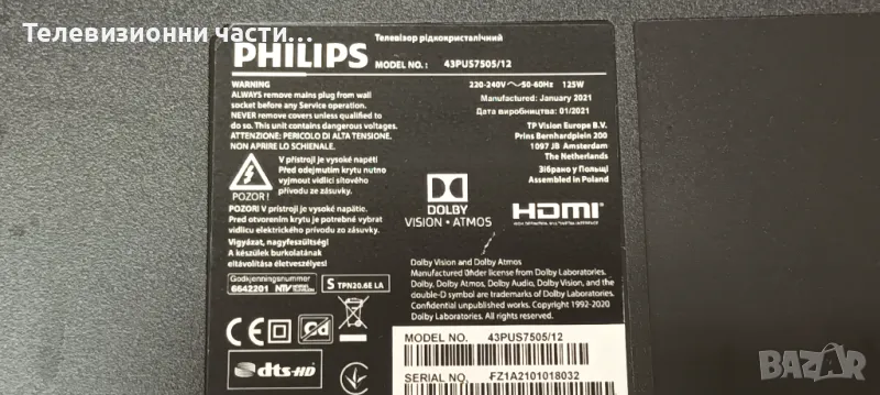 Philips 43PUS7505/12 със счупен екран TPT430H3-QUBH10.K HV430QUB-H10/715GA564-M01-B00-005Y/715GA052