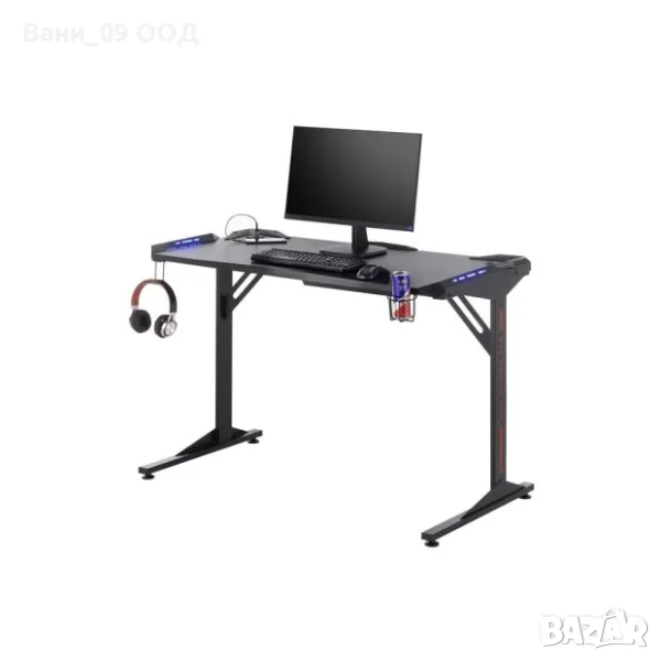 Геймърско бюро с размери Ш:119/Д:60/В:78 см. Дизайнът на модела предразполага за приятно изкарване на времето пред монитора, увлечени в поредната надпревара. Притежава достатъчно голям плот за поставянето на монитор, клавиатура и мишка. Плотът на бюрото е с карбонова текстура с отвор за кабели, LED осветление и 3 USB пората, поставен на два метални крака, боядисани в черен мат. Бюрото разполага с две поставки, едната от които за слушалки, а другата за напитки, които никога няма да разлеете, увлечени в играта.