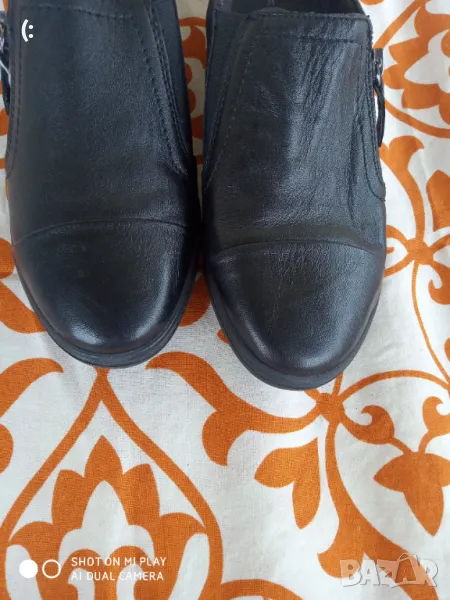 Обувките са в отлично състояние,обувани са само за проба..Цвета е класически черен.Изработени са от мека естествена кожа.Много удобни и мекички.Номер 39 с дължина на стелката 25,5см.Идеални за широк крак.Лесно се обуват имат цип .Марката е немска.Цена 42лв.