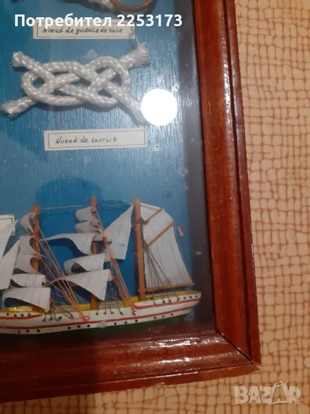 Дървена рамка,куки за закачане,23/30 см,възли и кораб.Зад стъкло.Добро за яхта ,вила,кръчма подарък, мъжка бърлога и др.мур.1.Лично в Сл.бряг или Пловдив