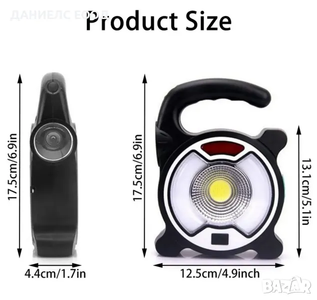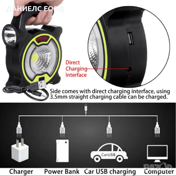 Преносима LED лампа с акумулаторна батерия и вграден соларен панел.