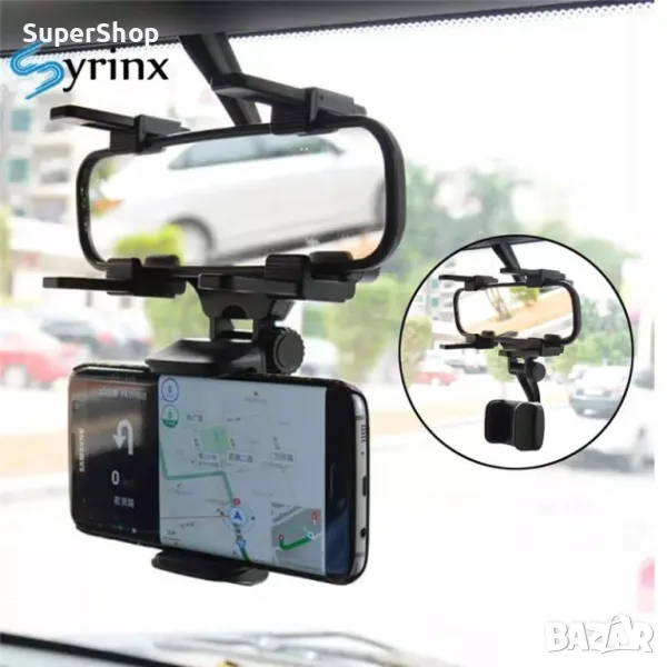 Универсална стойка за телефон за огледало за автомобил за обратно виждане. Изработена от висококачествен ABS материал, издръжлив и стабилен. Поддържа завъртане на 360 ° градуса за всякакви ъгли. Много лесен за инсталиране на огледало за обратно виждане на автомобила (огледалото не е включено). Стабилен монтаж, без притеснение от падане.