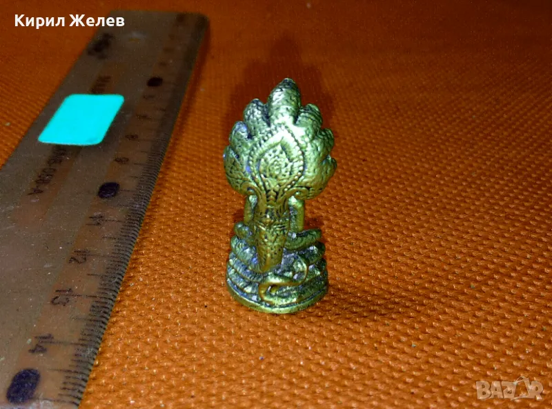 Стара ТИБЕТСКА БРОНЗОВА ФИГУРКА БУДА със ЗМИЙСКИ БАЛДАХИН МИНИАТЮРА За КОЛЕКЦИЯ 44109