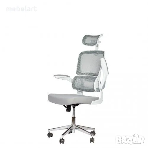 Този офис стол е масивен и качествен модел с вдигащи се подлакътници. Облегалката за глава се регулира. Снабден е с качествен газов амортисьор. Облегалката може да се пуска свободно назад или да се фиксира в горна позиция.