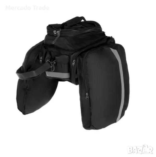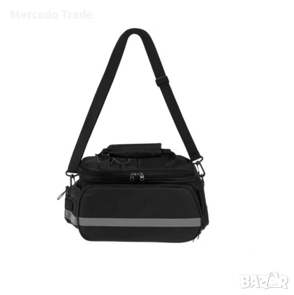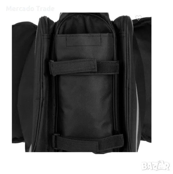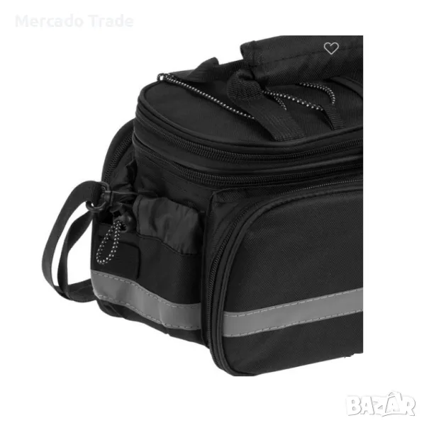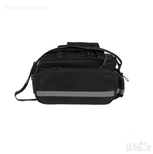 Многофункционална чанта Mercado Trade в черен цвят от 600D плат, с големи пространства, 27x5x33cm джобове, които се разгъват отстрани, дръжка, външни джобове и регулируема презрамка.