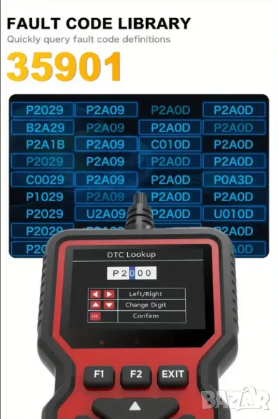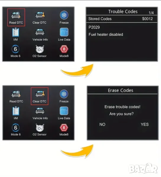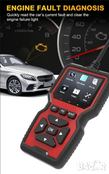 - Бързо четене и изчистане диагностичните кодове за неизправности.