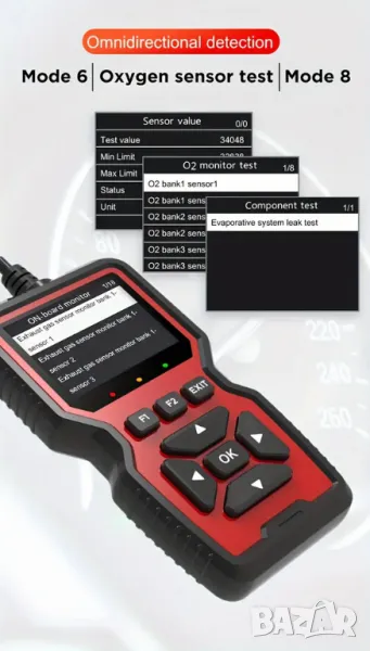 * Поддържа комуникация OBD2 EOBD с произведени в САЩ, Европа и Азия превозни средства от 2003 год. до днес, с бензинови и дизелови двигатели и автоматични скоростни кутии,