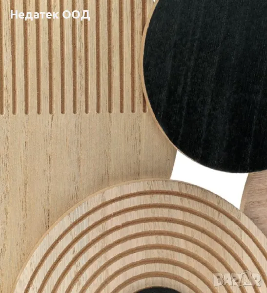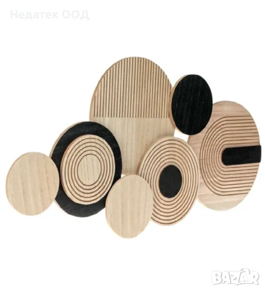 Декорация за стена с дървени подноси в различни размери, в естествен и черен цвят с релефен дизайн. Монтира се с 2 метални опори от задната страна.Пасва както на цветни, така и на бели стени и придава модерна нотка на вашата декорация.