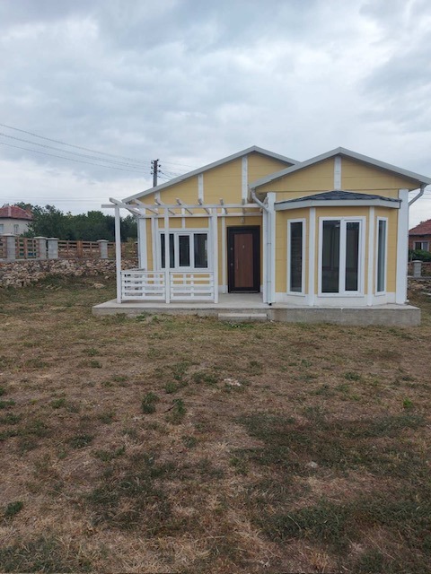 Предлага ме ви еднофамилна къща с квадратура от 55кв.м. и двор 500кв.м. Разпределението е както следва: - всекидневна с кухненски бокс, една спалня, санитарно помещение и веранда. Къщита е с всички сертификати за ЕС, като е и двойно по-подсилен покрив за да отговаря на българските стандарти за сняг, а ел инсталациите са пожароустойчиви, нищо, че в Бг не е изискване. Септичната яма е с бетонови пръстени.