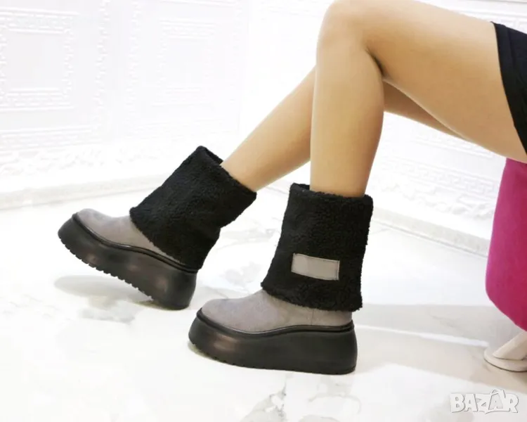 Боти на платформа - черно и сиво велур - BPK1