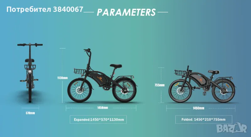 Размер на сгъване: 1170*200*720 мм