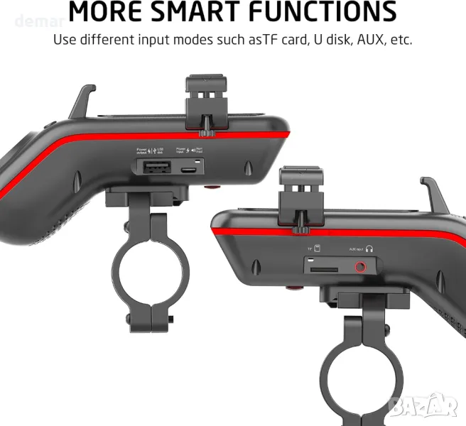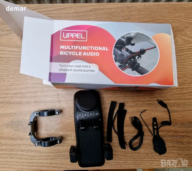 Стойката за телефон за велосипед UPPEL разполага с патентован затягащ механизъм за максимална стабилност, закрепвайки телефони с ширина от 3,5 до 7 инча дори по време на интензивно колоездене. Включва 5 W Bluetooth високоговорител за висококачествен звук, поддържащ множество музикални входове като TF карта и AUX. Вградената батерия от 5000 mAh осигурява 6-7 часа светлина, 12-15 часа музика и може да зарежда телефона ви през USB в движение. Устройството разполага и с LED светлина за осветяване до 50 метра и мощен регулируем велосипеден клаксон с три мелодии, повишаващи безопасността на пътя.