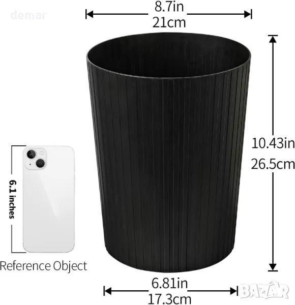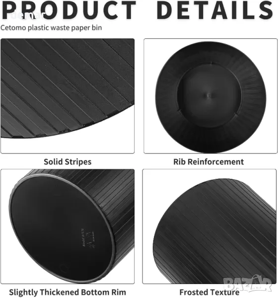 Това кошче за отпадъчна хартия се отличава със сложна матирана текстура с матова повърхност, която маскира пръстовите отпечатъци, осигурявайки съвременен, елегантен вид. Компактният му размер се побира лесно под бюра, в спални и малки пролуки, което го прави идеален за тесни пространства. Подсилена с плътни ивици, издръжливата конструкция осигурява допълнителна здравина и стабилност, запазвайки формата си във времето. С минималистична естетика и чисти линии, той се вписва безпроблемно във всяка модерна среда. Въпреки здравата си конструкция, той остава лек и лесен за управление, предлагайки перфектен баланс между издръжливост и удобство.