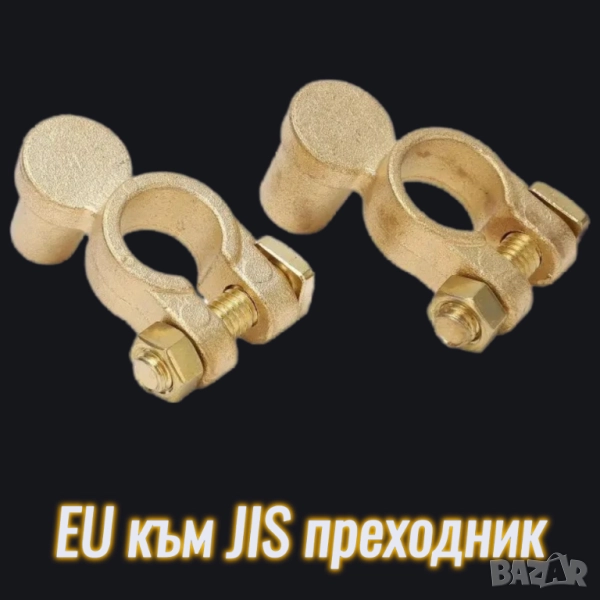 Може да ги ползвате в комплект EU към JIS + JIS към EU от общо 35лв, като реално става EU към EU с навдигане на клемите на EU акумулатор, като връзката става много здрава и сигурна, без загуби на ток и утечки. Самите отвори, както и горните клеми са конусовидни, за да съвпадат иделно с клемите на акумулаторите, които също са конусовидни! С една дума, не са прости клеми с цилиндричен размер! Като стегнат около клемите на акумулатора, не оставят следи след махане, защото съвпадат идеално! Имат шагренена текстура, която се впива по-добре в клемите, като преодолява тънкия слой оксидация и така прекарват още по-добре тока. Но ако ги изчистите ще е още по-добре.