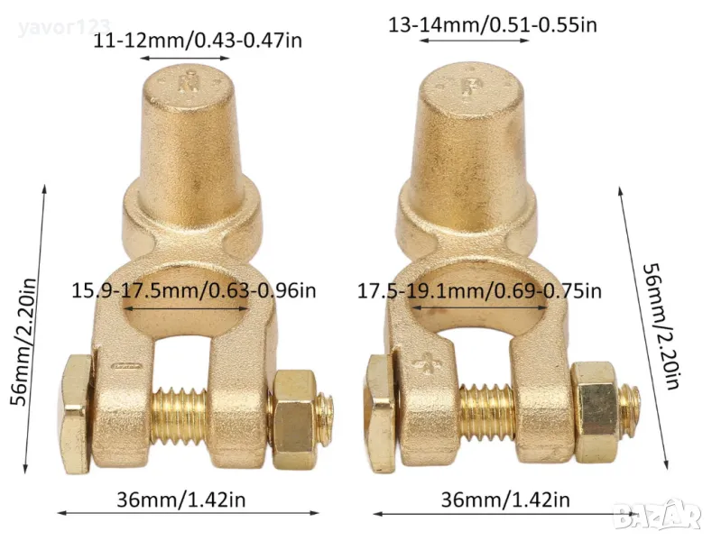 - Висококачествен материал: Клемите за акумулатор са изработени от първокласен месинг, който е устойчив на корозия, с висока якост и здравина, което гарантира дълготрайност и надеждност.