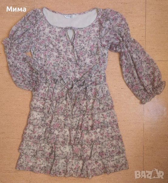 Нова коприна дамска рокля на волани, М, 15 лв.