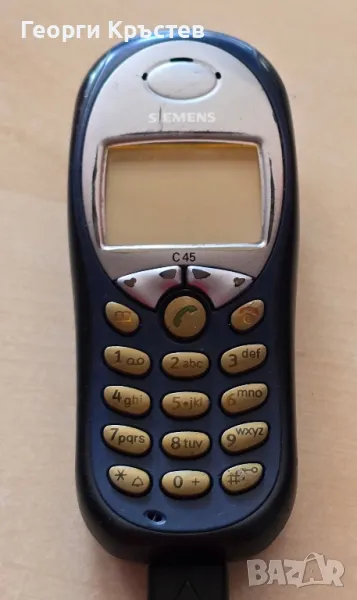 C45 - телефона се включва и работи, тестван с А1, нямам друга за проба, зарежда си батерията, клавиатура, слушалка и микрофон са ОК, дисплея НЕ дава образ, само свети, БГ меню неизвестно, без батерия и зарядно.