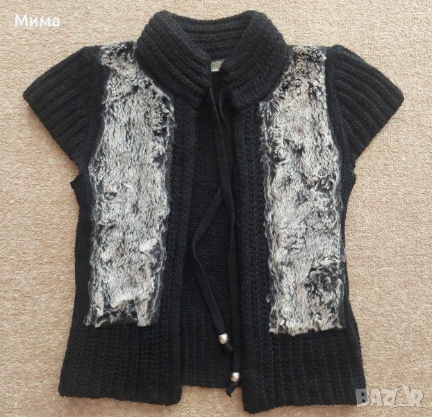 Черен плетен елек със сив пух,