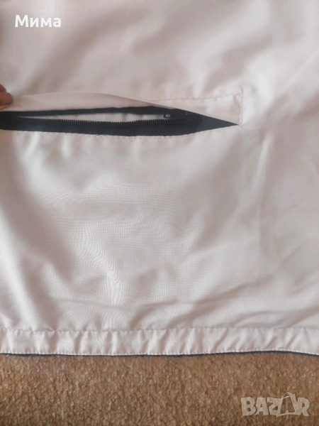 Якето –ветровка е подходящо като връхна дреха и е предназначено за предпазване от вятър. Материята е 100% полиестер. Якето има два външни джоба с цип. В яката има скрита качулка. Подходящо за туризъм, екскурзия или като резервна дреха в багажника на колата. Дължина 59 см., ширина 45 см., дължина ръкав 54 см., от рамо до рамо 39 см.
