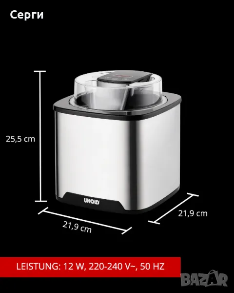 Сладолед машина UNOLD, Gelato без BPA , 1.5L, Неръждаемастомана/черен