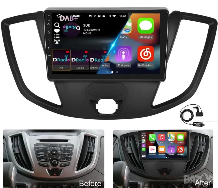 Мултимедия, за Ford Transit, Двоен дин, Android, Навигация, дисплей, Андроид плеър, Форд Транзит бус
