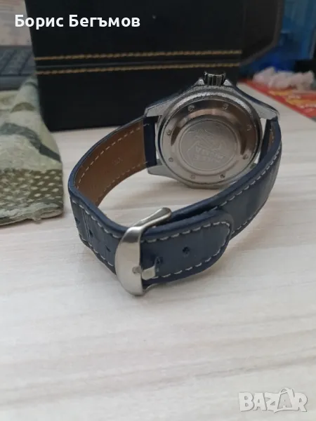 Продава запазен часовник-реплика Брайтлинг.Каишка от естествена кожа,размер с коронката 53мм.Автомат.Работи точно и безоткзазно.Пращаме със спиди или еконт с преглед и тест след превод на капаро за куриерската услуга, поради зачестили некоректни потребители или най-добре- лично предаване.