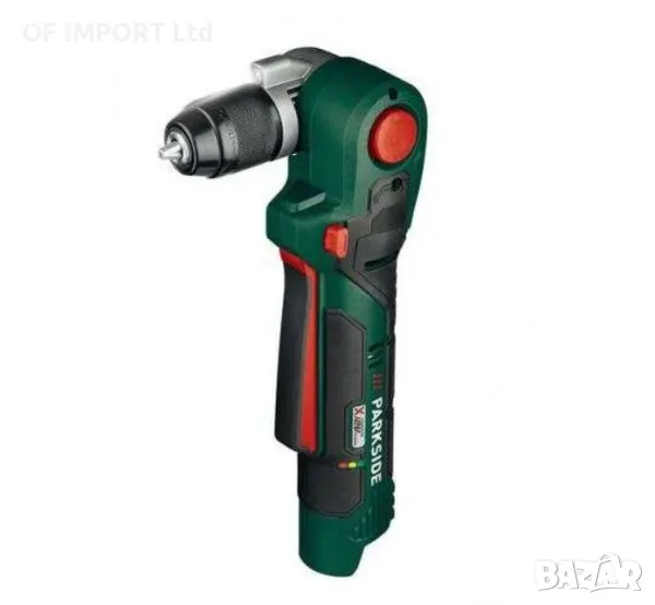 Parkside 12V акумулаторна ъглова бормашина за пробиване и завинтване на труднодостъпни места или в тесни работни участъци.