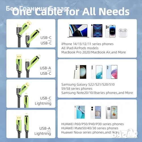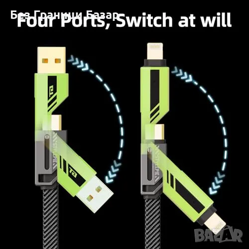 Нов Многофункционален 4 в 1 Заряден Кабел 60W Бърз Пренос на Данни