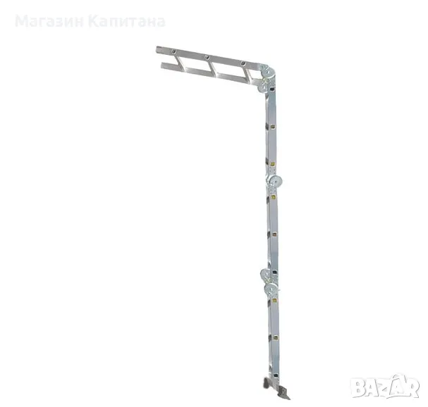 Алуминиевата мултифункционална стълба е многофункционална и не се налага да използвате друга стълба, за да стигнете до труднодостъпни места и тесни пространства. Има шест начина на приложение – права стълба, двойностояща А-образна стълба, скеле – работна платформа, подпираща се стълба, двойностояща стълба и сгънато положение.