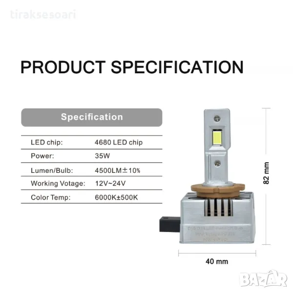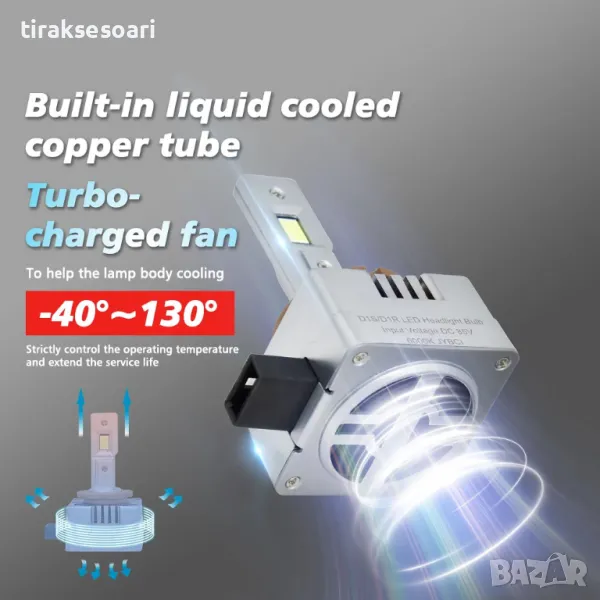 Комплект Диодни крушки D1S за фар с вградена охлаждаща система.