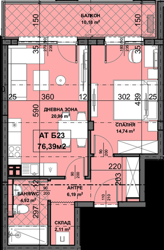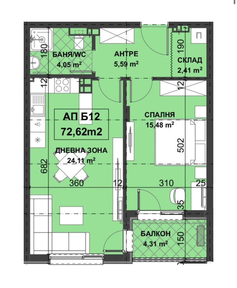 -Двустайни апартаменти от 72 кв.м. кв.м.