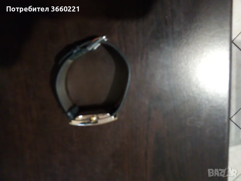 Матов и полиран корпус от неръждаема стомана, матова черна каишка от естествена кожа с катарама, минерално стъкло, 3 ATM водоустойчив.Plum Design, швейцарско производство, прецизен кварцов механизъм,ронда, работещ с батерии, матово сребро- цветен циферблат с полирани индекси в златист цвят, полирани стрелки в златист цвят, антиалергичен, размер на корпуса 26 x 39 mm, височина около 7 mm.перфектен неразличим от нов