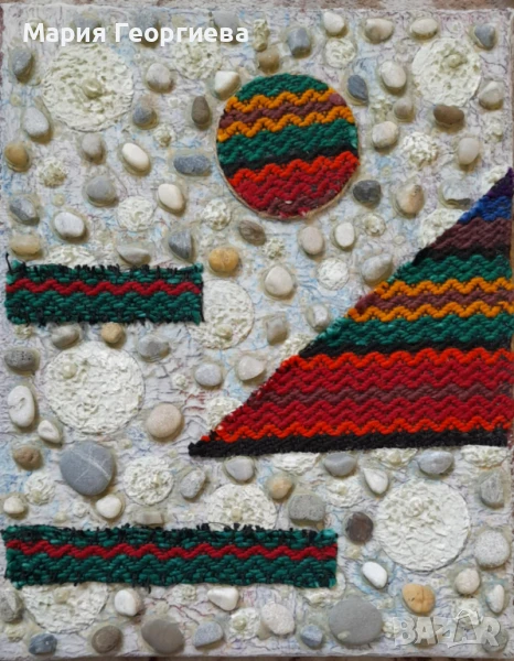 4. 25х30 / платно на подрамка, смесена техника с морски миди и камъчета / 150 лв.