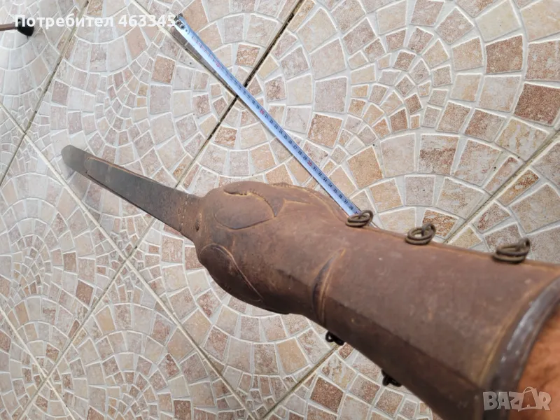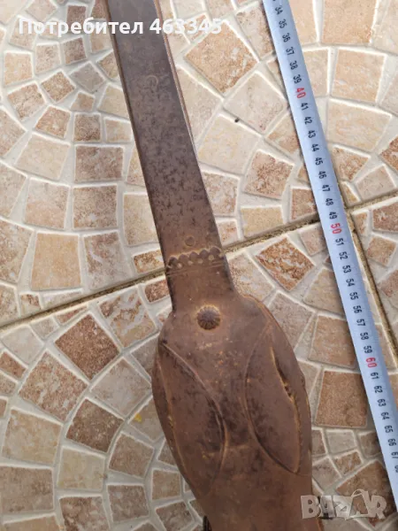 Изключително рядко индийско оръжие от 18-ти век - пата. Патата е само с повърхностна ръжда, без язви, непочиствана. Украсена с апликации, подсилващи гъвкавото стоманено острие. Няколко кукучки за закрепване на патата на предмишницата липсват, но се закрепва надеждно. Много, ама много рядко оръжие, което на Запад стига невероятни цени