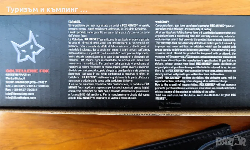 Ножа е окомплектован с добре направен калъф от изкуствена кожа.