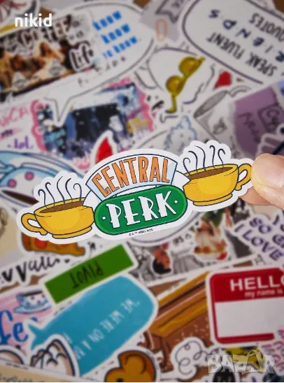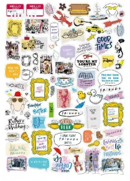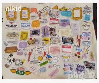 50 бр Приятели friends самозалепващи лепенки стикери украса картонена торта → Обява 46983114