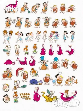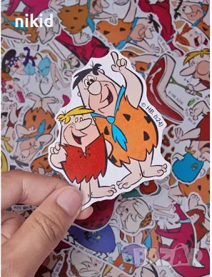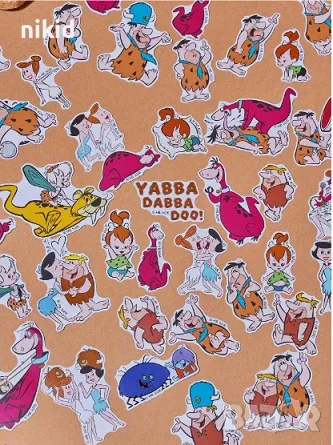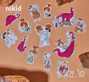 50 бр Семейство Флинстоун Flintstones самозалепващи лепенки стикери за украса декор картонена торта → Обява 46983397