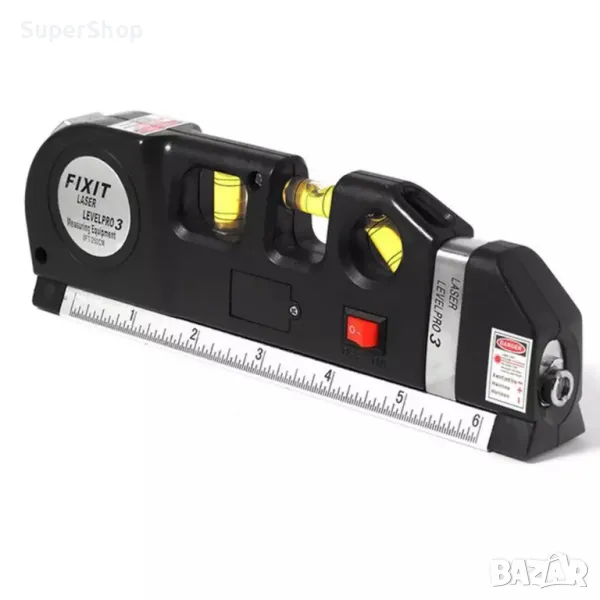 Мултифункционален лазерен нивелир с три различни нивела за изравняване, линийка и вградена ролетка 2,5 м.