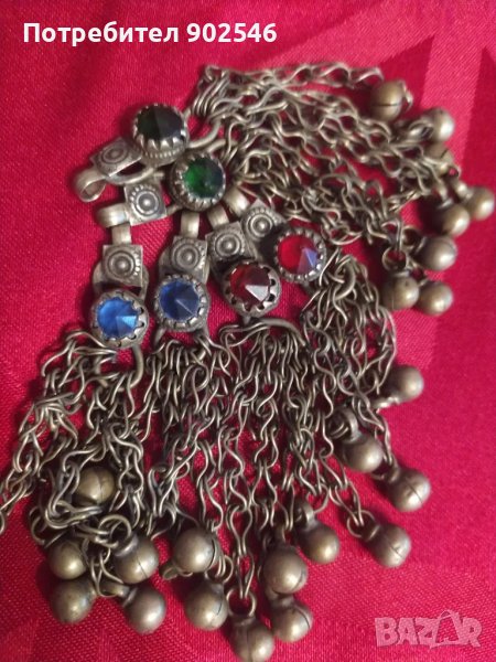 Автентични части от старинен накит. Може да се използват като обици ( като се добавят кукички ) или украса за носия. Цената е за един чифт. Има със сини, зелени или червени камъни.