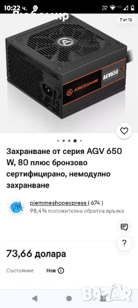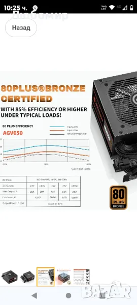 650W ATX захранване за компютър за игри.80 PLUS Bronze сертифициран, с ефективност от 85% или повече при типични натоварвания.