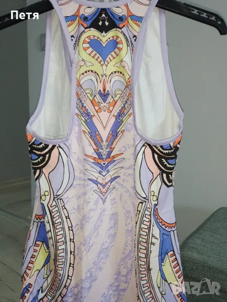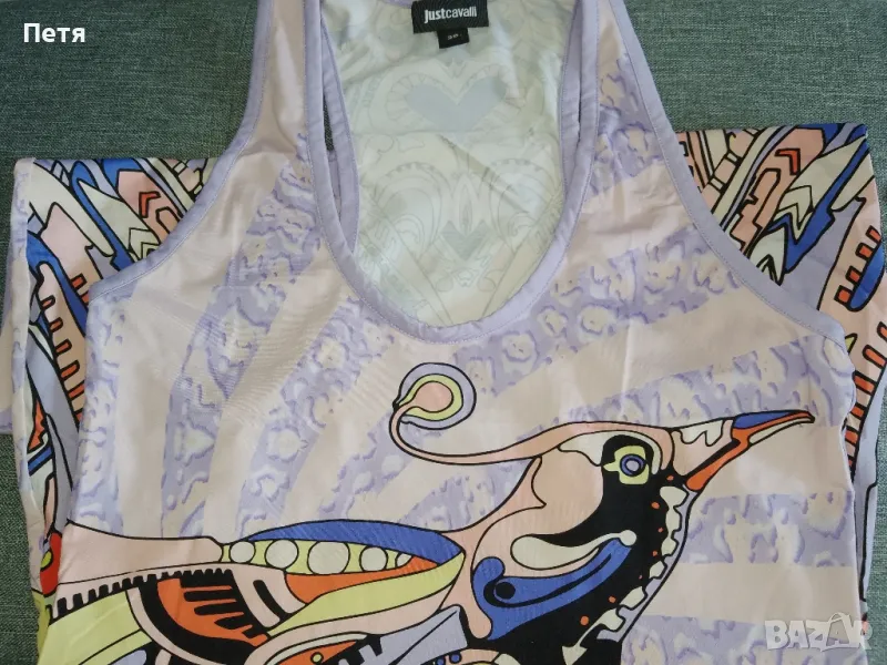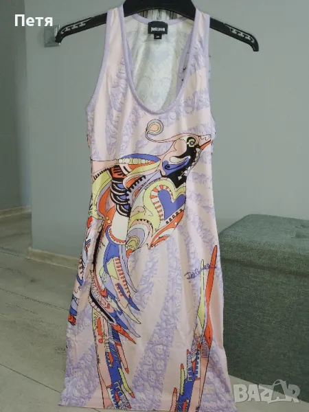 Дамска рокля на Just Cavalli, оригинална, нова - само е пробвана, не пазя етикета, размери - гръдна - 36 см. ханш -40 см. дължина от рамо - 92 см. състав - 84% полиамид, 16% еластан. При интерес предоставям още информация.