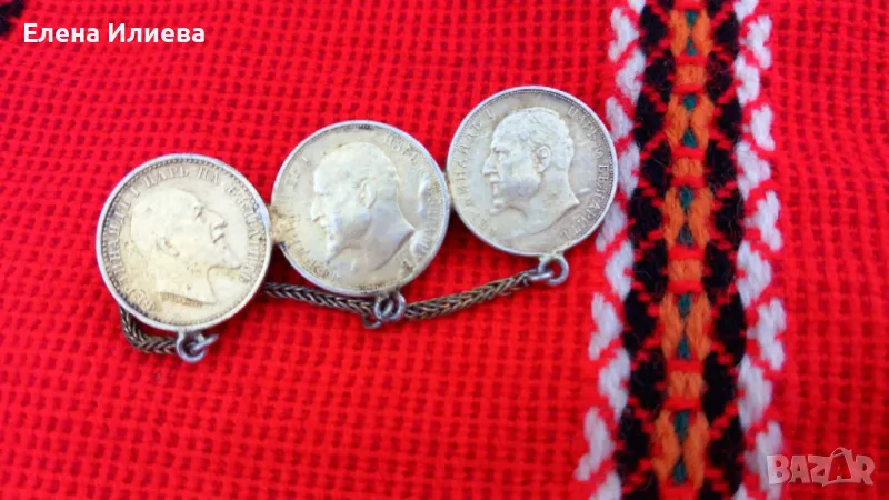 Стара сребърна брошка с монети.