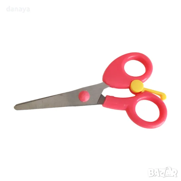 Детска ножица с връщаща пластина, подходяща за ученици в началните класове.