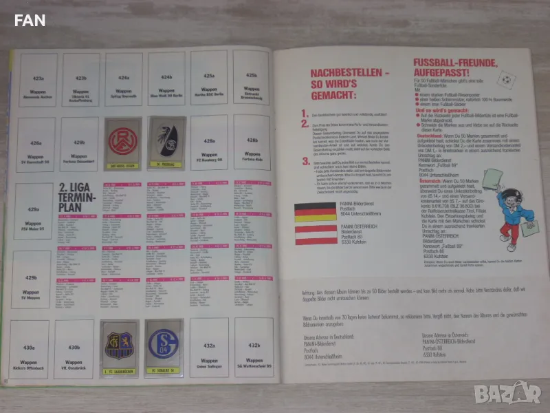 Оригинален стикер албум ПАНИНИ - PANINI FUSSBALL 89 Бундеслига сезон 1989/90 частично попълнен → Обява 46988507