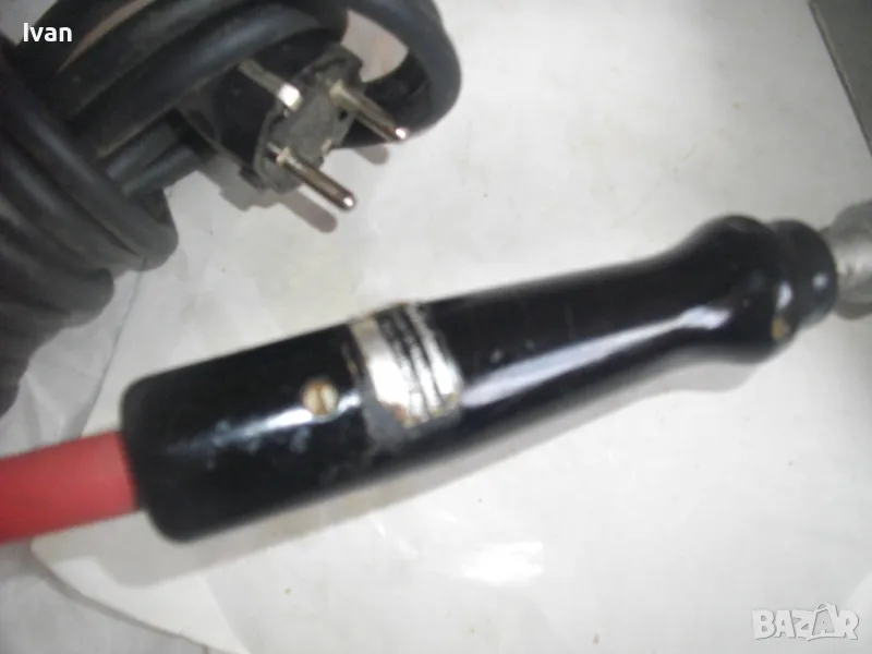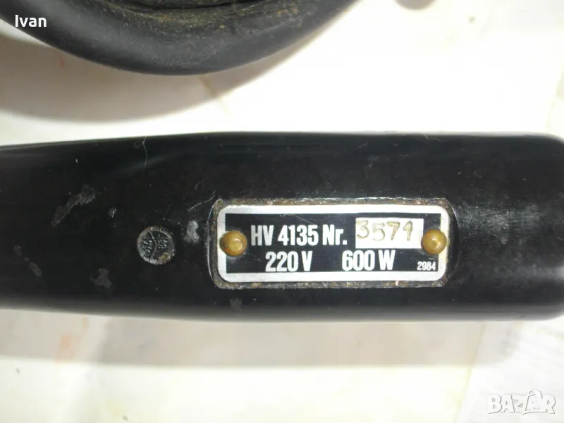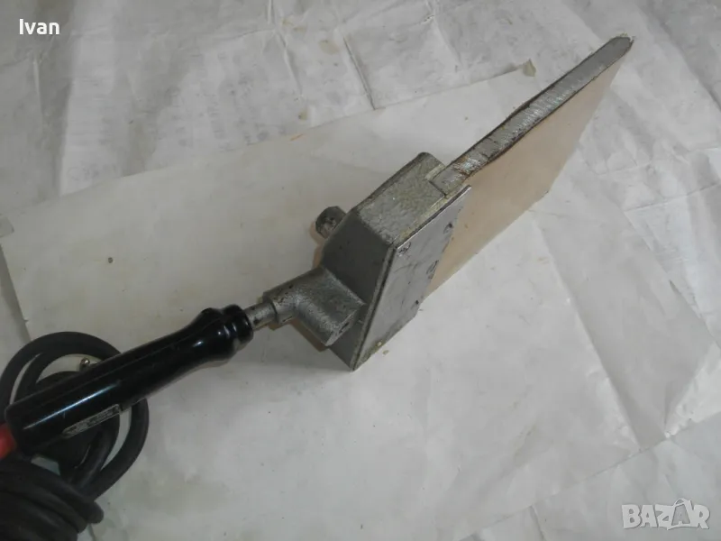 ОПИСАНИЕ на нагревателна ел.машина за премахване/снемане на боя от повъхности - тип електрически скрепер с нагревателна плоча с голям размер - цена 399 лв. Старо качество, почти нова, с много запазен външен вид и отлично техническо/работно състояние. Маркировки по машината - BIELOMAR HV 4135. Предполагам немско или френско производство. Захранване 220 волта, мощност 600 вата, загряваща температура - регулация от 50 до 300 градуса. Стоманен корпус, бъкелит дръжка, 5 метра захранващ гумиран оригинален кабел, специализирано ПВЦ покритие на нагревателната плоча. Размер на нагревателната плоча 170 х 150 мм. Нагрява от двете страни плочата и покритието е от двете страни. Тегло на машината - 2,0 кг. Цена 399 лв.