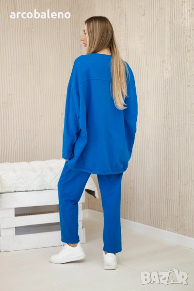 Дамски Oversize памучен комплект суичър + панталон, 5цвята