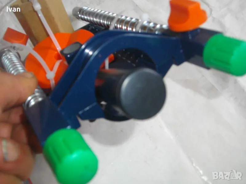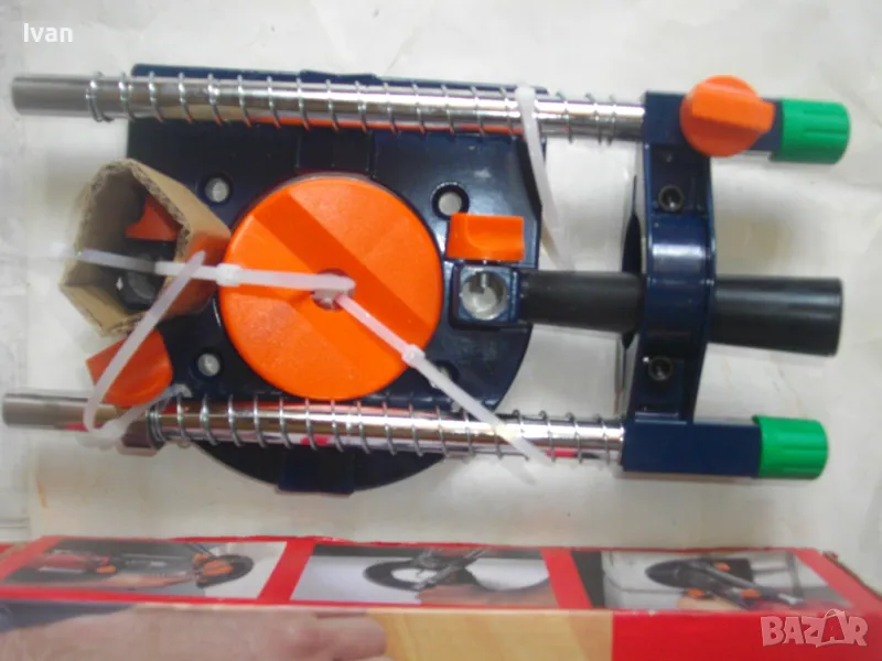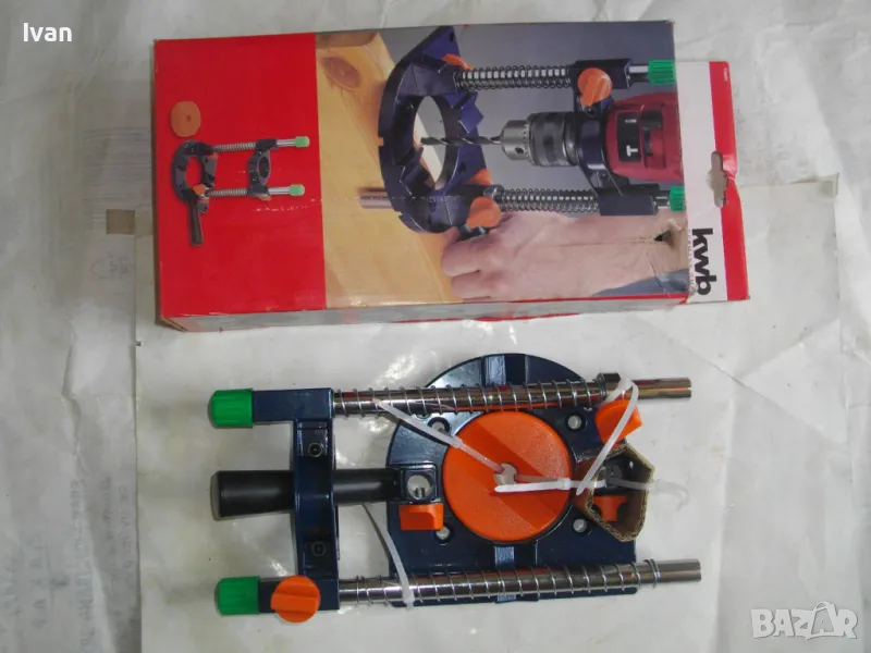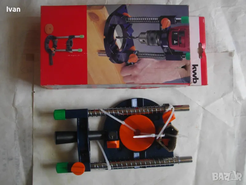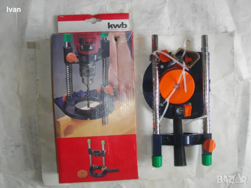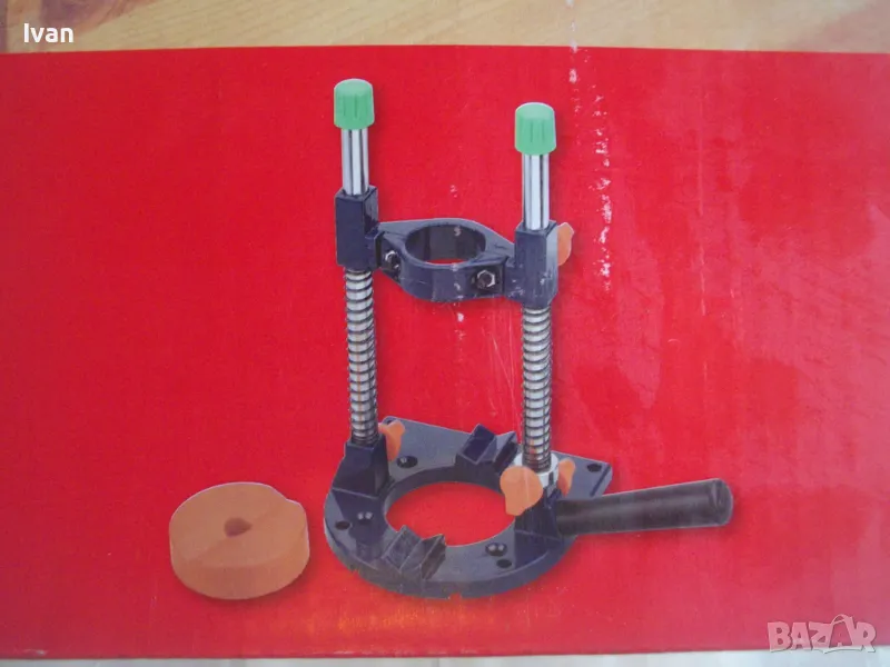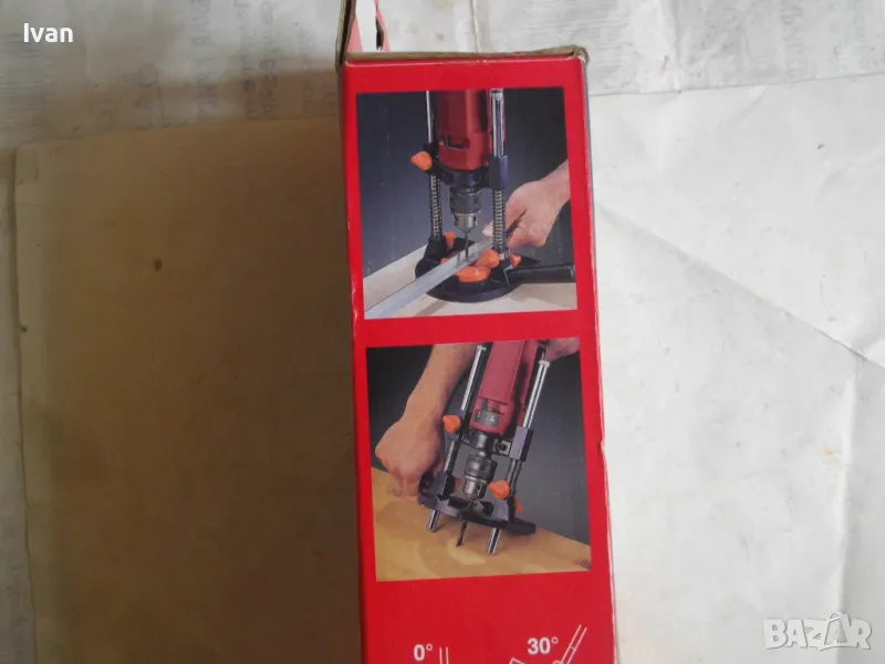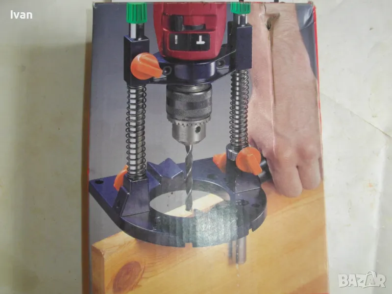ОПИСАНИЕ на мобилна стойка за бормашина - 99 лв. Стойка за бормашина подходяща за контролирано пробиване до точни дълбочини или ъгли. Съвсем нова, неизползвана и неупотребявана. В разглобеина състояние в оригинална опаковка. Безстепенно регулиране на дълбочината, прав ограничител за серийно пробиване в една линия.С интегриран V-образен канал за сигурно фиксиране на кръгли материали. Технически параметри: